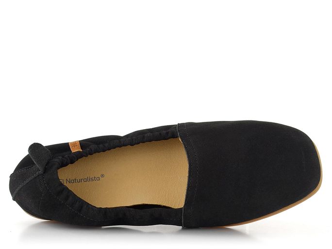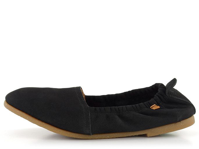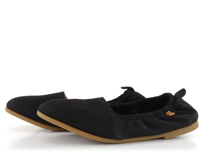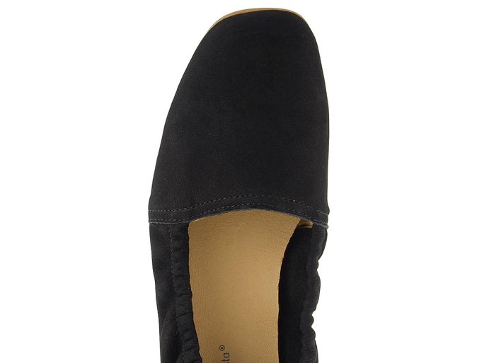 Dámské komfortní baleríny z černé nubukové kůže a s pružným obvodovým lemem.