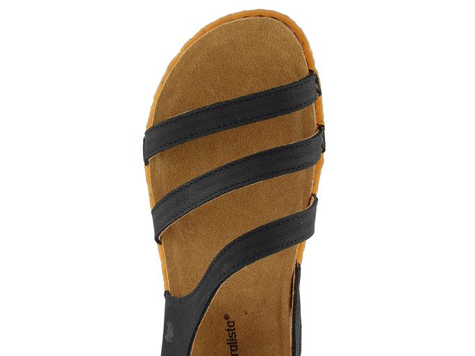 Dámské komfortní sandálky s tenkými pásky v černé barvě a s extra pružnou, latexovou podešví.