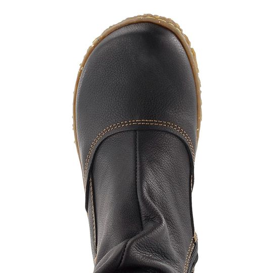 Exkluzivní dámský kožený kotník v černé barvě, v prostorném střihu a s módním řasením.
