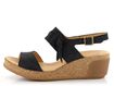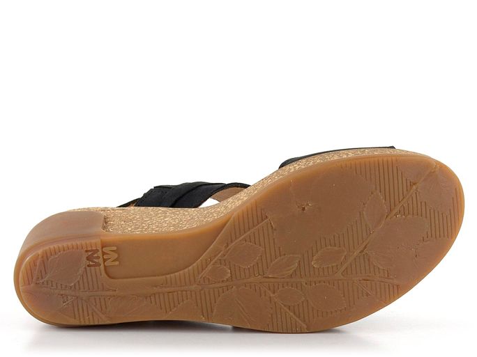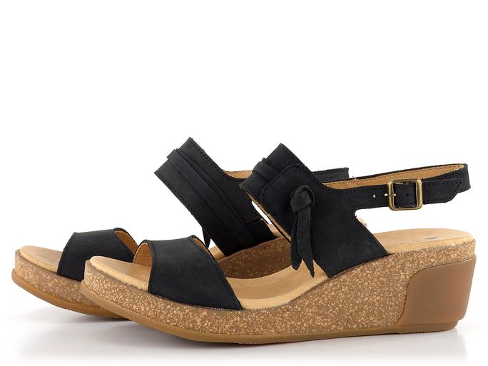 Dámské, pohodlné sandály na klínku, se širokými koženými pásky v černé barvě.