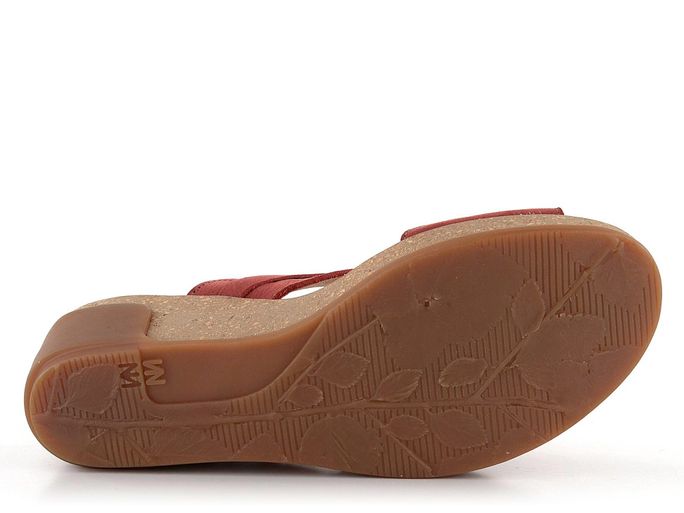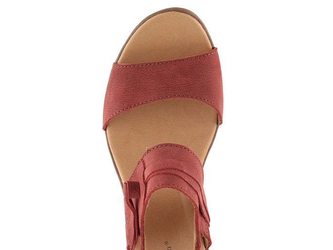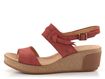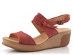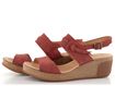 Dámské, pohodlné sandály na klínku, se širokými koženými pásky v cihlově červené barvě.