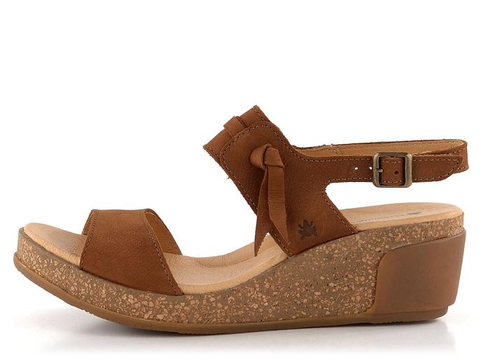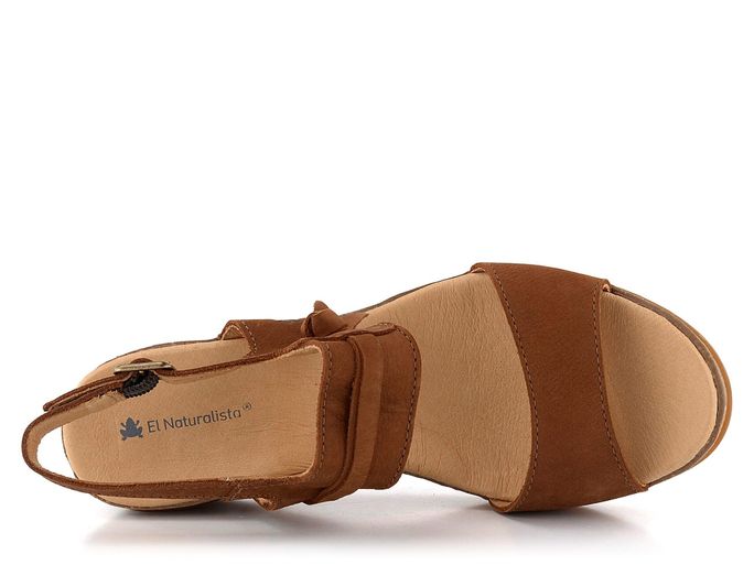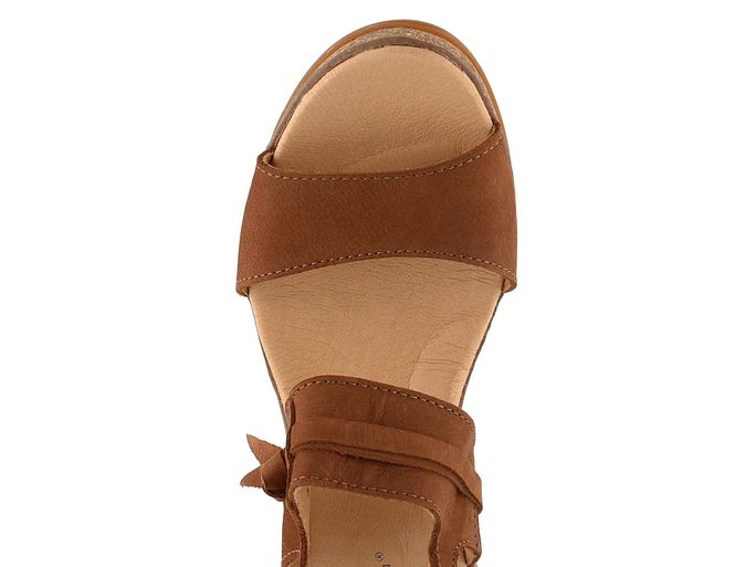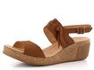 Dámské, pohodlné sandály na klínku, se širokými koženými pásky v hnědé barvě.