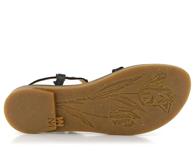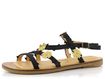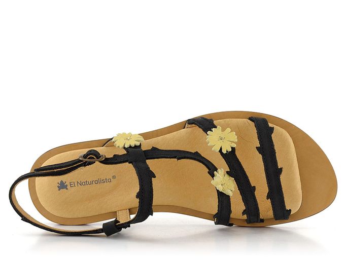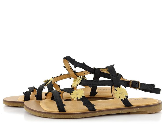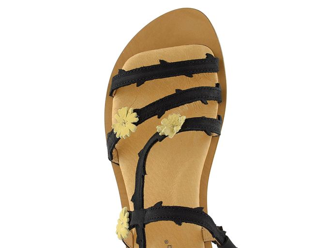 Dámské komfortní sandálky s tenkými pásky v černé barvě, ozdobené kvítky.