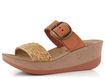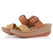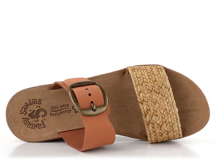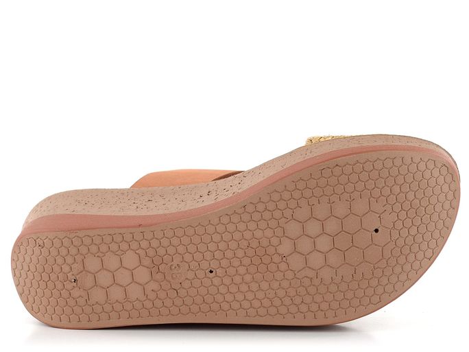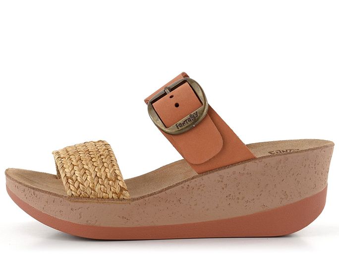 Dámské kožené pantofle na pohodlném klínu v pěkné kombinaci cihlové bary a barvy přírodního lýka.
