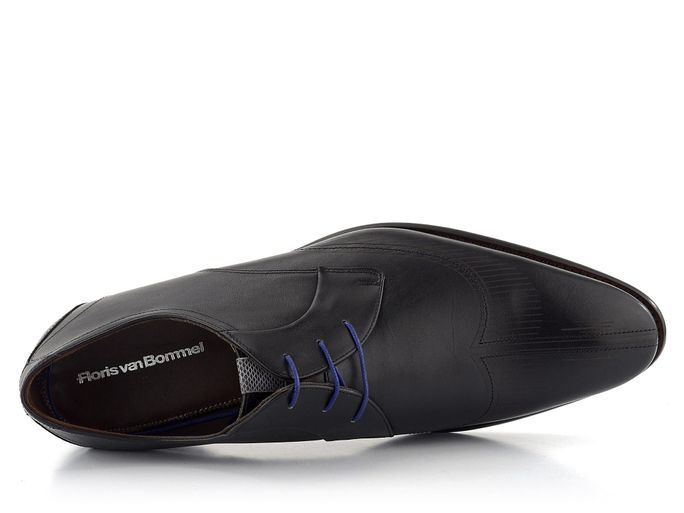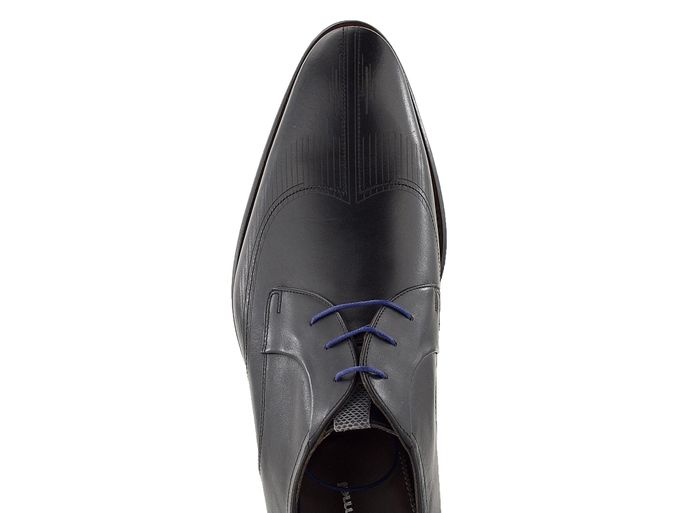 Luxusní pánské šněrovací polobotky v černé barvě s trendy modrými doplňky.