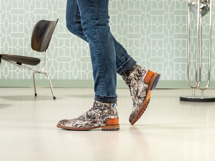 Výstřední pánský kotník z vlasové kůže s originálním potiskem.