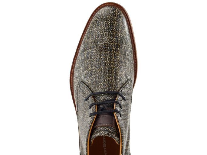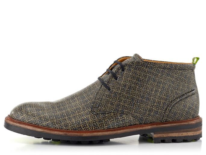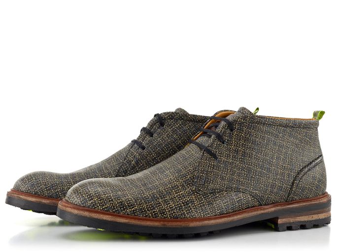 Pánský luxusní šněrovací kotník s dezénem tkaniny, s celokoženou podšívkou a bytelnou podešví.