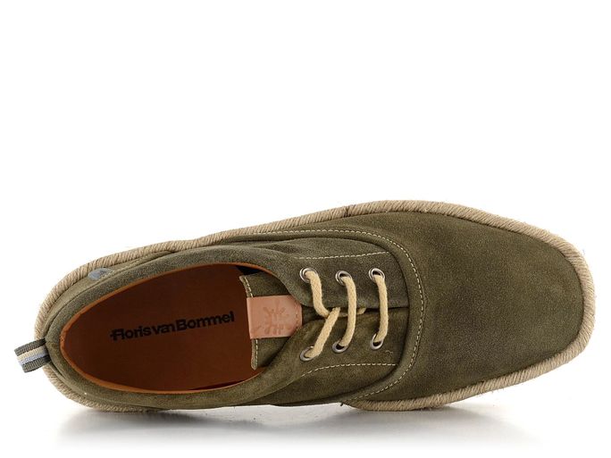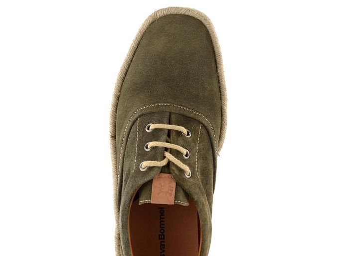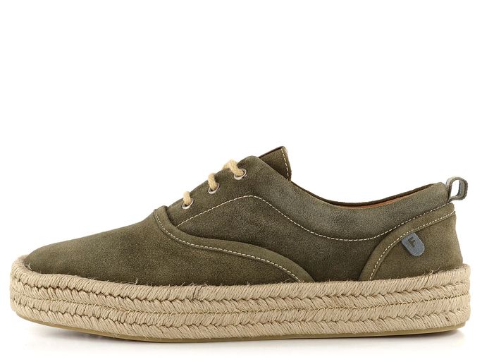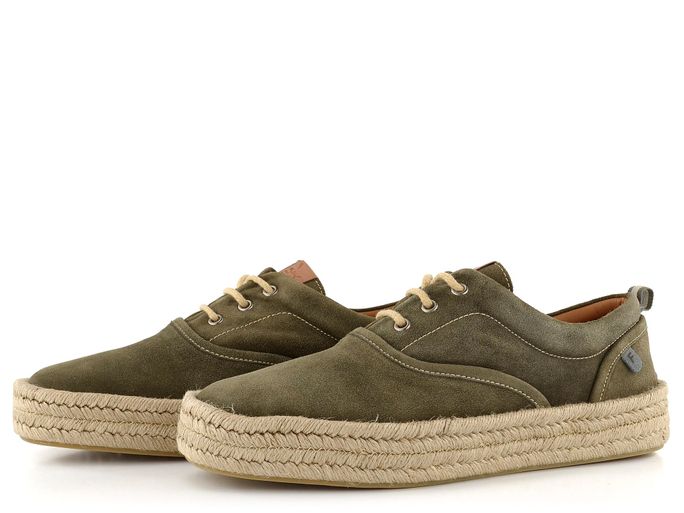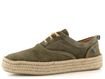 Luxusní pánské šněrovací polobotky ze semišové kůže v khaki zelené barvě a s jutovou podešví.
