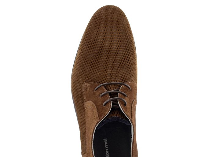 Originální pánské polobotky ze semišové kůže s plastickým vzorem a kontrastní rovnou podešví.