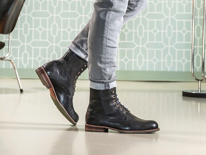 Trendy pánský kotník z kvalitní hladké kůže, vyteplený pravým beránkem.