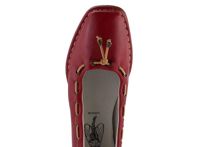 Komfortní dámské baleríny z hladké kůže v červené barvě s ozdobnou pruženkou v obvodu.