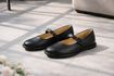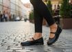 Komfortní dámské kožené baleríny v černé barvě s nastavitelným nártovým páskem.