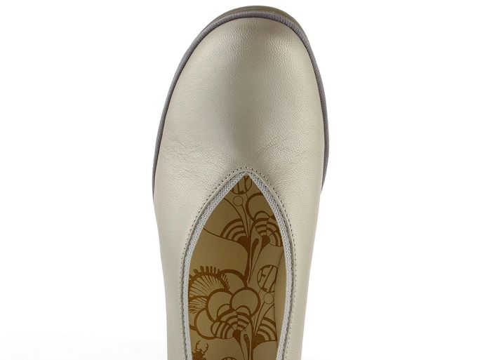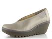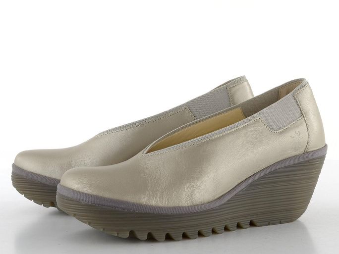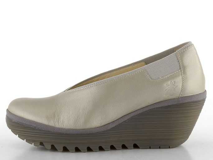 Dámské lodičky na klínu od značky Fly London zaujmou elegantním designem a vysokou kvalitou. Jsou ideální volbou pro ženy, které hledají komfortní a stylovou obuv na jarní a letní sezónu. Svršek z jemně strukturované kůže s metalickou úpravou dodává botám sofistikovaný vzhled, zatímco světle šedý odstín s béžovým nádechem snadno sladíte s různými outfity. Pružinka v obvodu a kožená podšívka zajišťují pohodlí při nošení. Vyšší latexová platforma s klínem o výšce 6,5 cm poskytuje stabilitu a podporu. Tyto lodičky jsou skvělou volbou pro formální příležitosti i každodenní nošení ve městě.