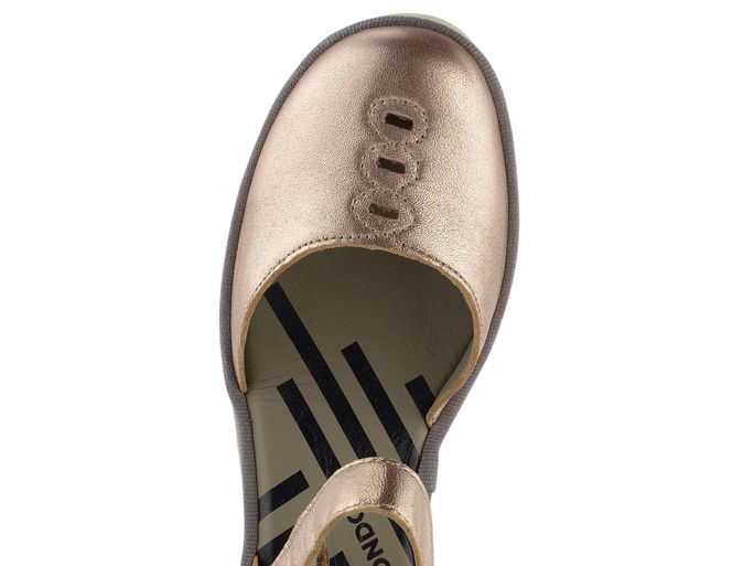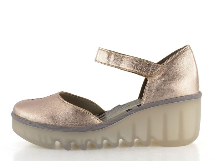 Dámské metalické lodičky na klínu od značky Fly London kombinují eleganci a pohodlí. Svršek z metalické kůže v béžovém, světle bronzovém odstínu dodává botám sofistikovaný vzhled, zatímco komfortní střih s kulatou špičkou zajišťuje pohodlí při každém kroku. Pásek kolem nohy se suchým zipem poskytuje stabilitu a snadné zapínání. Uvnitř najdete poddajnou koženou podšívku a měkkou stélku, které se postarají o maximální komfort. Vysoká latexová platforma s klínem a hrubým vlnkovitým profilem zajišťuje stabilitu a moderní vzhled, což dělá tyto lodičky ideální volbou pro každodenní nošení i formální příležitosti.