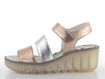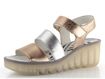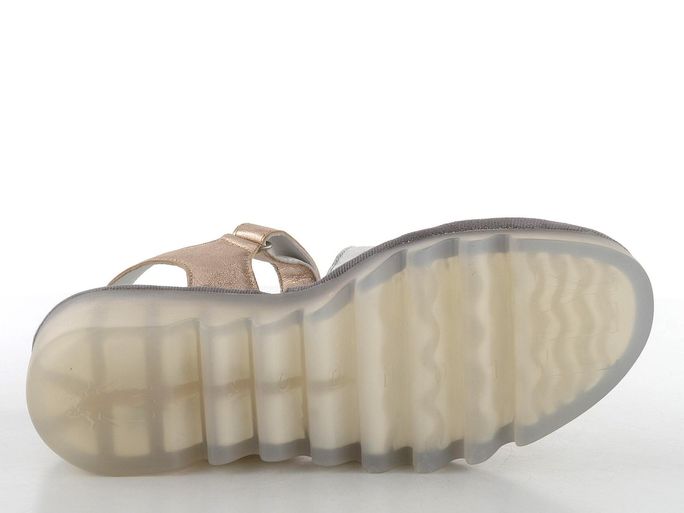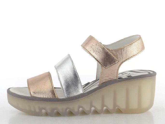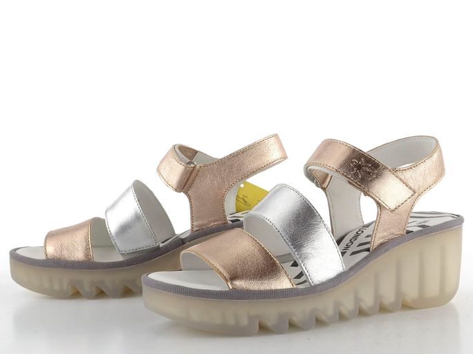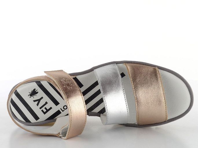 Dámské sandály na klínu od módní značky Fly London zaujmou svým elegantním designem a důrazem na pohodlí. Svršek z metalické kůže kombinuje odstíny béžové, bronzové a stříbrné, což dodává botám jedinečný vzhled. Nártový pásek s pruženkou a kotníkový pásek na suchý zip zajišťují snadné a bezpečné upevnění. Uvnitř vás potěší celokožená podšívka a měkká stélka, která poskytuje komfort při každém kroku. Stabilní latexová klínová podešev s hrubým profilem dodává botám výšku 6,5 cm, aniž by ztrácely na pohodlí. Ideální volba pro jarní a letní sezónu, která spojuje styl s funkčností.