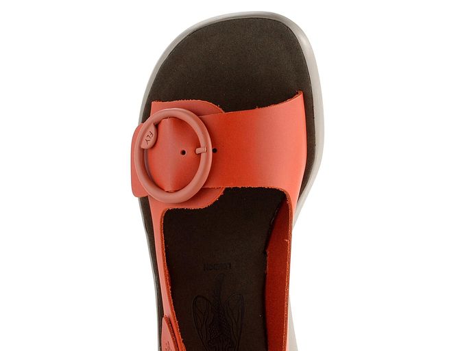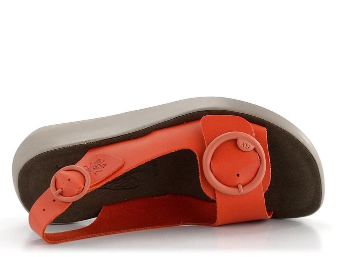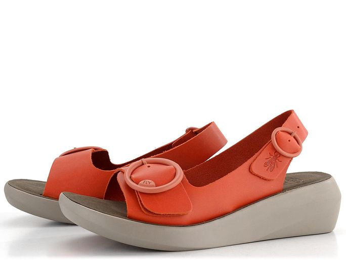 Sandály značky Fly London vynikají svou osobitostí a trendovým designem, který si ženy zamilují. Svršek z pevné hladké kůže v cihlově oranžové barvě zaujme na první pohled. Díky prostorné kulatější špičce a pásku se sponou s délkovou regulací na špičce i patě poskytují sandály maximální pohodlí a skvělou přizpůsobivost. Rubová strana z textilie a měkká stélka potažená broušenou textilií zajišťují příjemný pocit při nošení. Sandály jsou vybaveny odlehčenou syntetickou platformou s malým klínkem a mají 5 cm vysoký podpatek, což jim dodává elegantní vzhled. Tento model z kolekce jaro/léto 2024 je ideální volbou pro každodenní nošení i formálnější příležitosti.