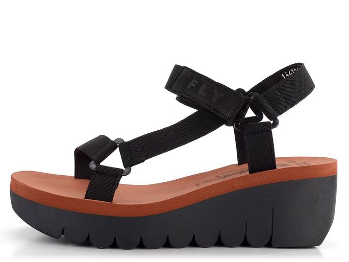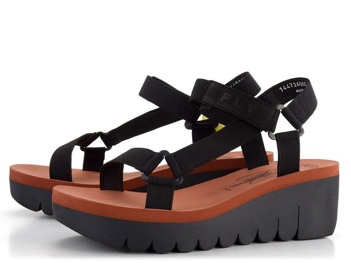 Mírně extravagantní a velmi pohodlné sandály na klínu od značky Fly London jsou ideální volbou pro nadcházející jaro a léto. Tyto sandály kombinují kvalitní textilii a hladkou kůži, což zajišťuje dlouhou životnost a komfort při nošení. Černá barva dodává sandálům elegantní vzhled, který snadno sladíte s různými outfity.