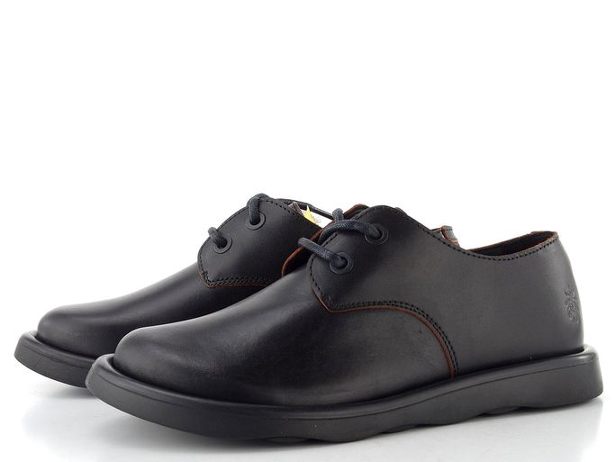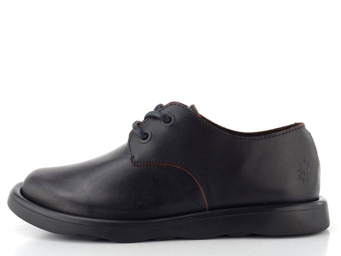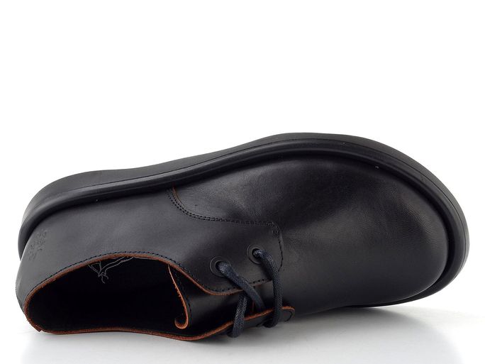 Luxusní dámské polobotky značky Fly London kombinují extravagantní styl s praktickým designem, který oceníte při každodenním nošení. Svršek z hladké pevnější kůže v elegantní černé barvě je doplněn cihlově oranžovým lemováním, které dodává botám osobitý šarm. Krátké šněrování se silnými kulatými tkaničkami zajišťuje pohodlné a bezpečné nošení.