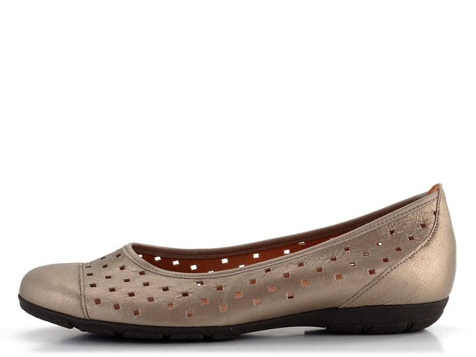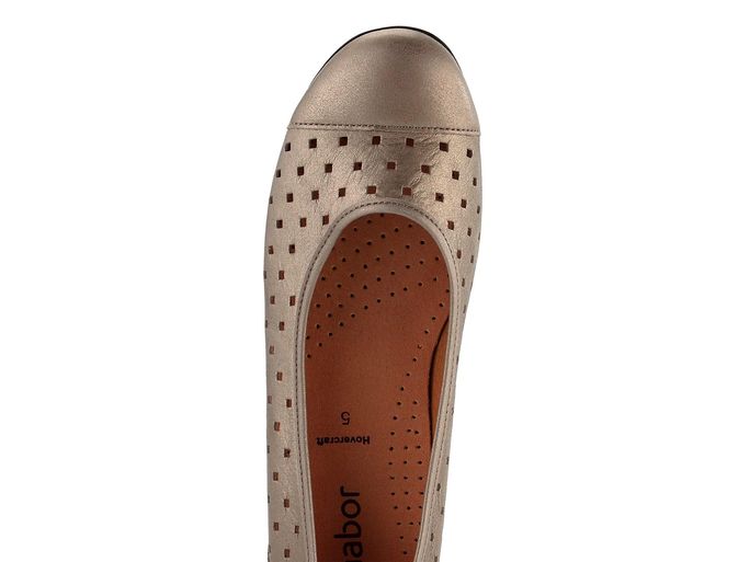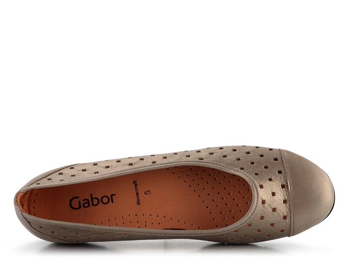 Nechte se okouzlit luxusem a pohodlím, které nabízí baleríny značky Gabor. Tyto boty jsou ideální volbou pro jarní a letní sezónu, kdy chcete spojit eleganci s komfortem. Svršek z lehce zbroušené kůže v odstínu světlé bronzové (metalická šedobéžová) dodává botám jedinečný vzhled, zatímco efektní prořezávaný vzor zajišťuje nejen estetický dojem, ale i funkčnost. Vnitřní podšívka z netkané textilie a extra měkká kožená stélka s perforací garantují maximální pohodlí při každém kroku. Kožený vnitřní opatek a flexibilní latexová podešev se zvýšenou patou (1,8 cm) přispívají k celkové stabilitě a komfortu. Vyberte si kvalitu a styl, který si vaše nohy zaslouží.