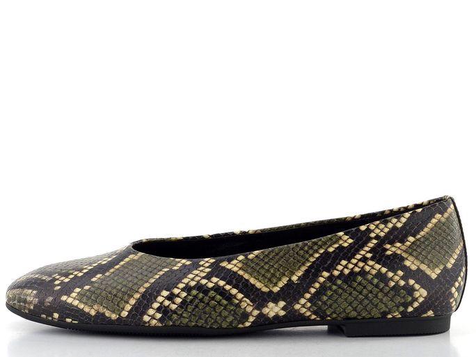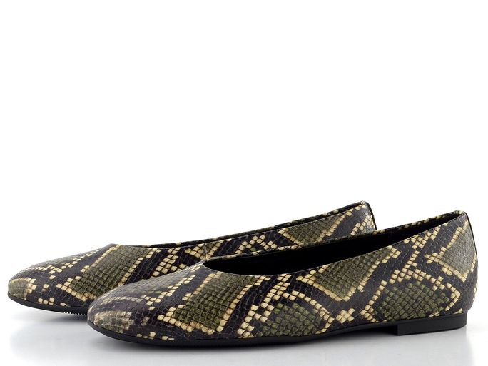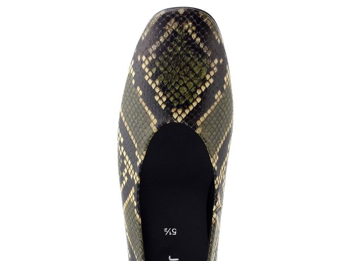 Dámské baleríny v celokoženém provedení s hadinkovým vzorem a nízkým podpatečkem.