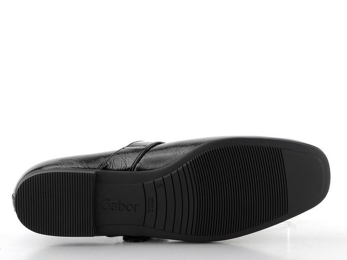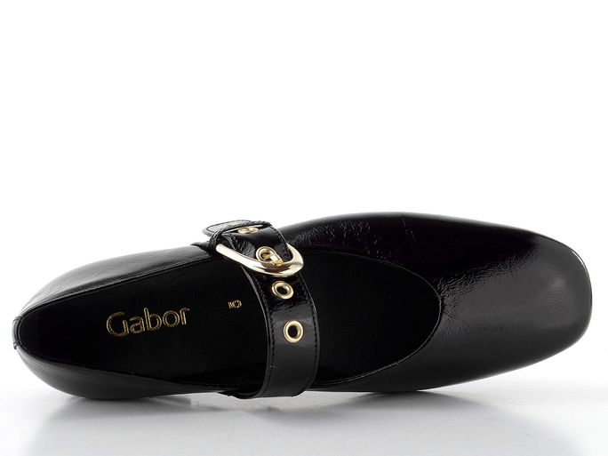 Komfortní a elegantní baleríny značky Gabor jsou ideální volbou pro každou ženu, která hledá styl a pohodlí v jednom. Tyto černé lakované baleríny na nízkém podpatku kombinují hranatější špičku s mírně užším střihem, což dodává obuvi moderní vzhled. Kožený svršek v lakované úpravě spolu s nártovým páskem se sponou a kovovými očky ve světle zlaté barvě vytvářejí sofistikovaný dojem. Uvnitř najdete hladkou koženou podšívku a měkkou koženou stélku, které zajišťují celodenní pohodlí. Flexibilní syntetická podešev s jemným vzorkem a nízkým podpatečkem je praktická pro každodenní nošení. Tyto baleríny jsou perfektní volbou pro podzimní a zimní sezónu.