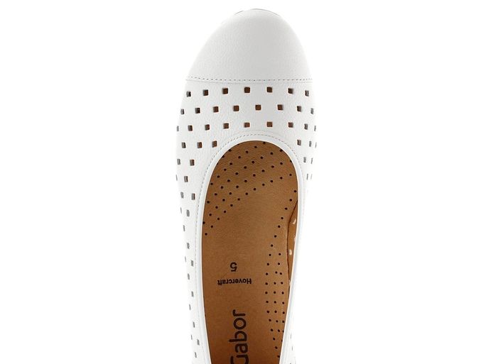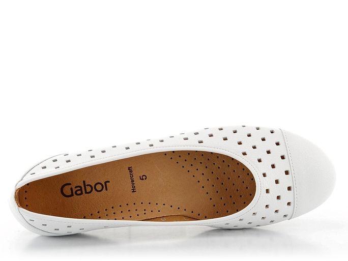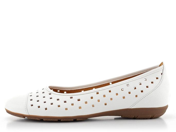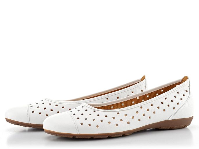 Vysoce komfortní dámské baleríny od renomované značky Gabor jsou ideální volbou pro jarní a letní měsíce. Tyto elegantní otevřené boty v bílé barvě kombinují styl a pohodlí. Svršek z strukturální kůže s vzdušnými prořezávanými čtverečky zajišťuje příjemné odvětrávání chodidla, zatímco měkká kožená stélka s perforací poskytuje extra komfort.
