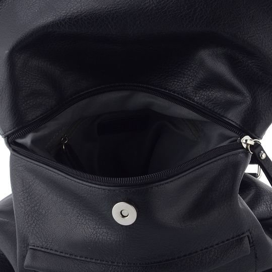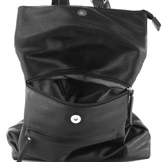 Pokud sledujete módní trendy a hledáte stylový a praktický doplněk, tento batoh od značky Gabor je ideální volbou. Je vyroben z pevného syntetického strukturovaného materiálu v elegantní černé barvě, která se hodí ke každému outfitu. Batoh nabízí pohodlné ramenní popruhy s možností délkové regulace a praktické poutko na zavěšení. Na přední a zadní straně najdete zipové kapsičky pro rychlý přístup k drobnostem. Pod klopou, která se upíná na magnetický druk a slouží také jako zipová kapsička, se skrývá hlavní prostor s dalšími přihrádkami. Rozměry batohu jsou 28,5 cm na šířku, 35 cm na výšku a hloubka dna je 12 cm. Tento batoh je skvělým společníkem pro každodenní nošení.