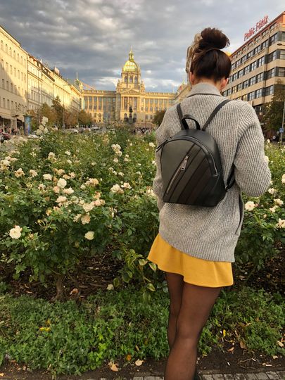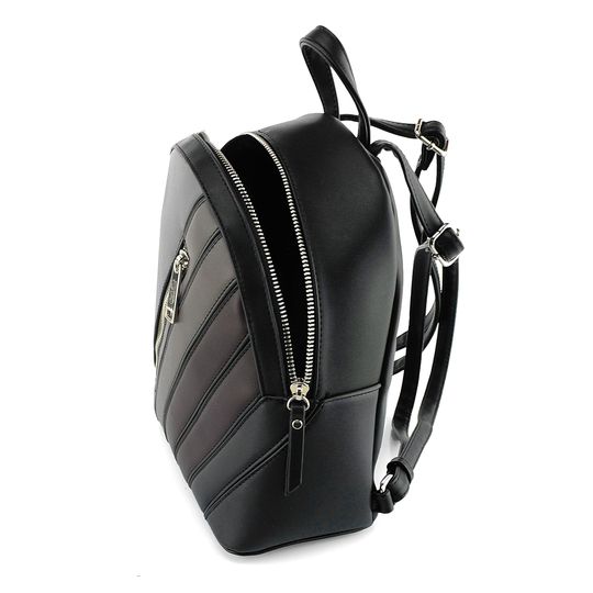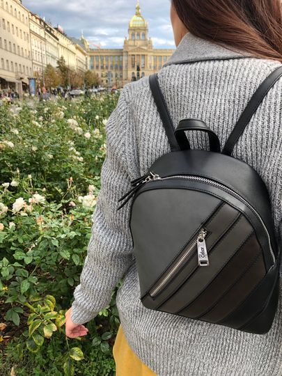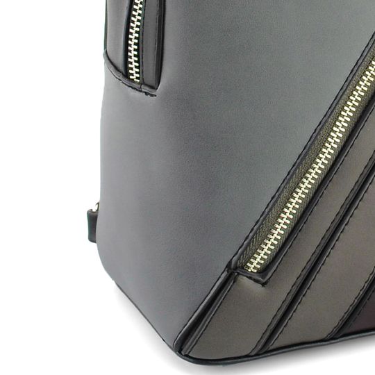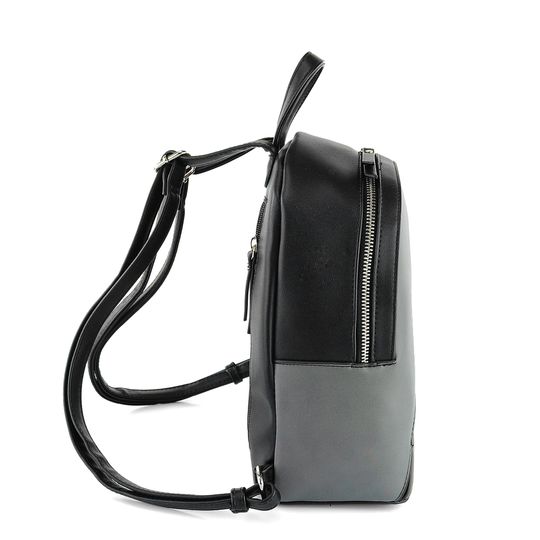 Dámský trendy menší batoh v černé a šedivé barvě, s přední kapsičkou a nastavitelnými popruhy.