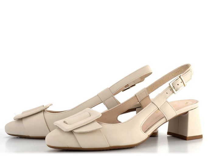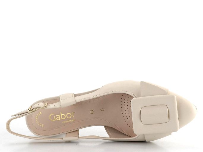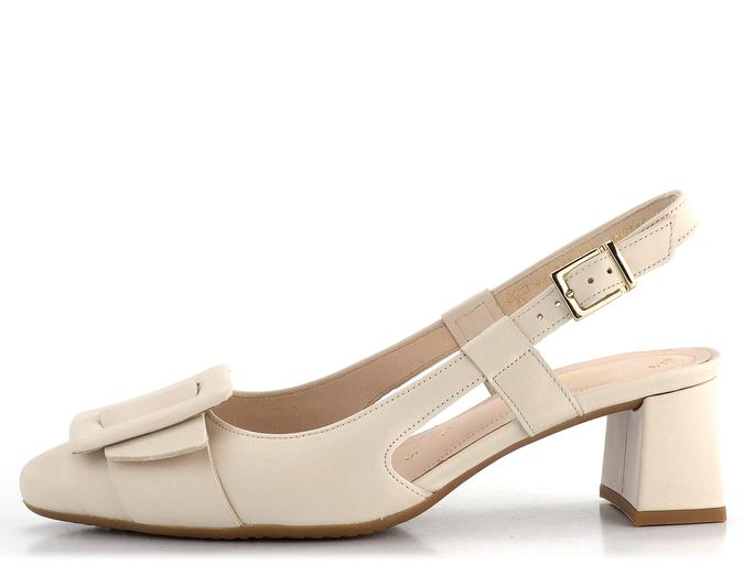Elegantní a komfortní dámské lodičky s volnou patou od značky Gabor jsou ideální volbou pro jaro a léto. Jejich světle béžová barva a hladká kůže dodávají botám sofistikovaný vzhled, který se skvěle hodí jak do kanceláře, tak na formální příležitosti. Prostorný střih do módní špičky zajišťuje pohodlí po celý den, zatímco celokožená podšívka přispívá k maximálnímu komfortu. Dominantní spona ve stejné barevné a materiálové kombinaci dodává lodičkám unikátní vzhled. Patní pásek s možností délkové regulace pomocí sponky zaručuje, že boty perfektně padnou. Stabilní podpatek o výšce 5 cm je potažený a extra vyměkčené místo pod bříšky s jemnou perforací poskytuje dodatečné pohodlí. Tyto lodičky jsou výsledkem lepeného výrobního způsobu, což zaručuje jejich trvanlivost a kvalitu.