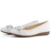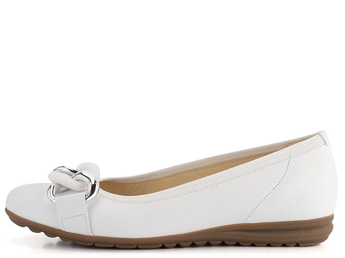 Dámské komfortní kožené baleríny v bílé barvě s ozdobným řetízkem.