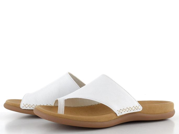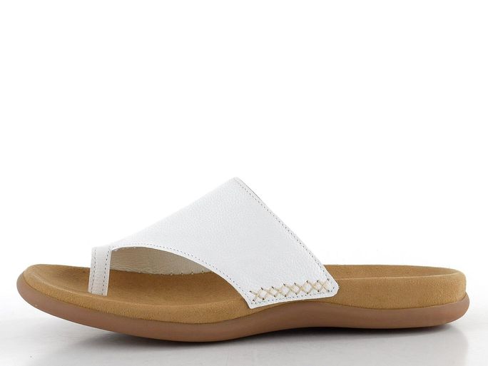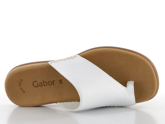 Vysoce komfortní letní žabky od značky Gabor jsou ideální volbou pro jarní a letní sezónu. Tyto páskové boty vynikají jemně strukturovanou kůží a odstínem mírně odražené bílé barvy, který snadno doplní každý outfit. Díky anatomicky tvarované stélce potažené textilií a flexibilní latexové podešvi poskytují maximální pohodlí při každém kroku. Střih s plochým páskem mezi prsty zajišťuje, že boty dokonale padnou. Výška podpatku je 2,5 cm, což zajišťuje optimální oporu a komfort. Kožená podšívka na nártu přidává další vrstvu pohodlí a stylu. Tyto žabky jsou součástí linie Best Fitting®, která je známá svým důrazem na perfektní střih a pohodlí. S těmito sandály budete připraveni na jakoukoliv příležitost, ať už se chystáte do města, do kanceláře nebo na lehkou procházku venku.