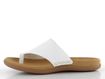 Dámské letní kožené žabky z jemně strukturované kůže v odražené bílé barvě s plochým páskem mezi prsty a na pohodlné latexové podešvi.