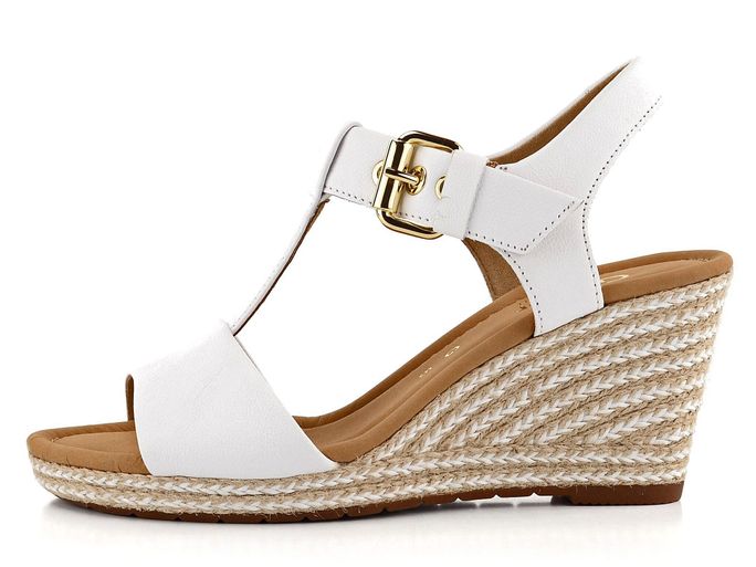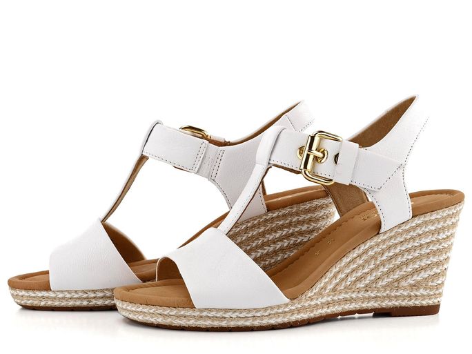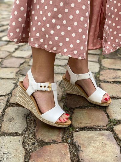 Originální dámské sandály z bílé kůže a na klínku ze splétané juty.