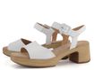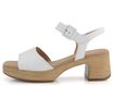 Stylové dámské kožené sandály v bílé barvě na vyšší platformě s podpatkem v dřevěném dekoru.