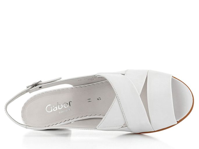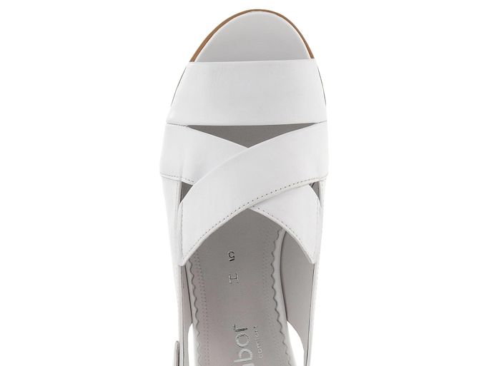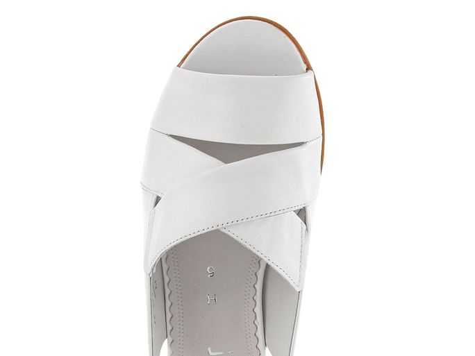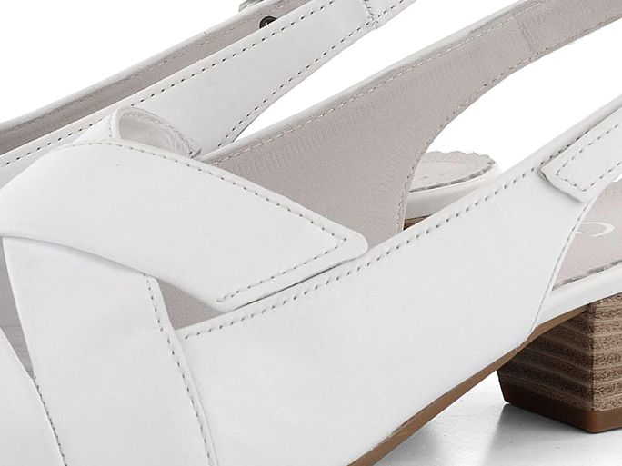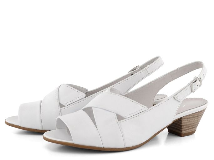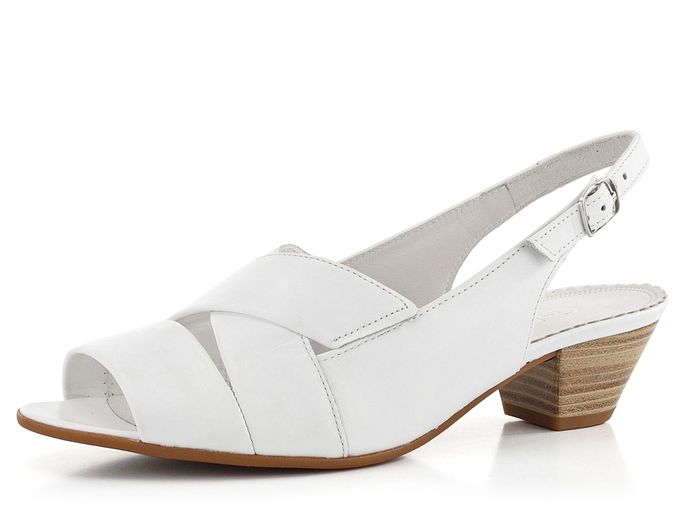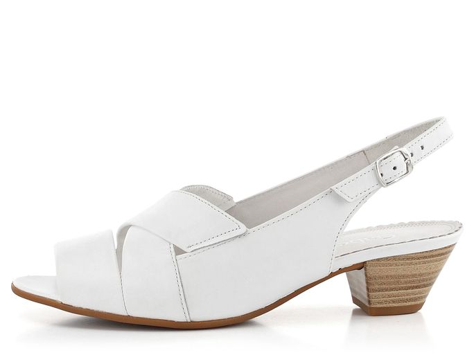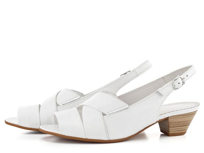 Dámské elegantní širší sandály z hladké kůže v bílé barvě, na nižším stabilním podpatku.