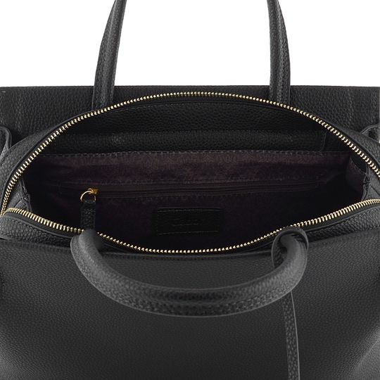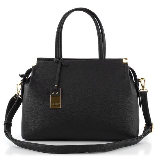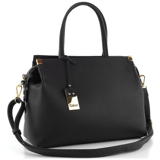 Dámská shopper kabelka střední velikosti, v černém provedení s kovovými doplňky ve zlaté barvě.