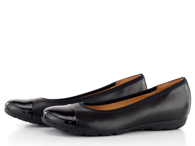 Dámské komfortní baleríny z hladké a lakované imitace kůže a s vnitřní měkkou koženou stélkou.