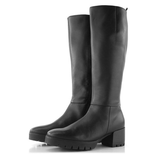 Objevte elegantní a komfortní dámské kozačky značky Gabor. Tento model je navržen pro náročné ženy, které ocení autentický design a trvalou kvalitu. Kozačky jsou vyrobeny z poddajné hladké kůže v černé barvě, která se snadno kombinuje s jakýmkoliv outfitem. Díky postrannímu zipu a všité pružné vsadce se snadno obouvají a přizpůsobí se tvaru vašich lýtek. Vnitřní podšívka z microfleecové textilie poskytuje výborné tepelně-izolační vlastnosti, což oceníte v chladnějších dnech. Extra měkká stélka z paměťové pěny zaručuje pohodlí i při celodenním nošení. Kozačky mají šířku G a jsou vhodné pro širší typ lýtek s lýtkovým obvodem 40 cm (vel. 38). Výška kozaček je 39 cm bez podpatku, který má střední výšku 6 cm. Vyšší latexová podešev s hrubým vzorkem zajišťuje stabilitu a komfort při chůzi. Tento model je ideální volbou pro podzimní a zimní sezónu 2022/23.