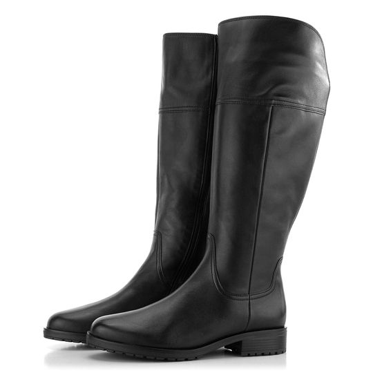 Luxusní dámské kožené kozačky ve velikosti XL na nízkém, pohodlném podpatku.