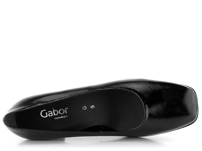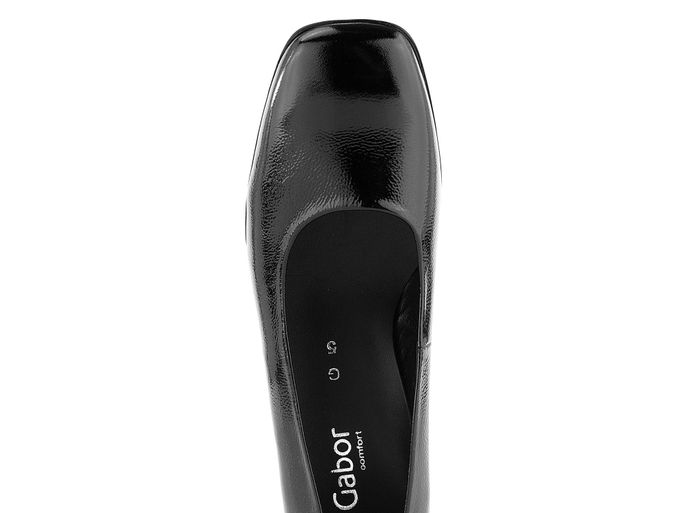 Tyto černé lakované lodičky od značky Gabor jsou ideálním spojením elegance a pohodlí. Navrženy pro podzimní a zimní sezónu, tyto boty zaujmou svým celokoženým provedením s jemně zvrásněnou a lakovanou úpravou. Módní karé špička a široký potažený podpatek o výšce 5,5 cm dodávají lodičkám moderní vzhled, zatímco extra měkčená stélka a celokožená podšívka zajišťují maximální komfort při každém kroku. Díky vyztuženému opatku a flexibilní podešvi se v nich budete cítit jistě a pohodlně po celý den. Tyto lodičky jsou ideální volbou pro každou ženu, která hledá stylovou a pohodlnou obuv do města, kanceláře nebo na formální příležitosti. Upozorňujeme, že přirozené zvrásnění materiálu v namáhaných místech je typickou vlastností kůže a nikoliv vadou.