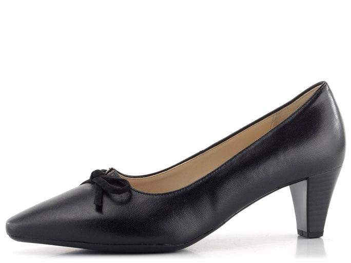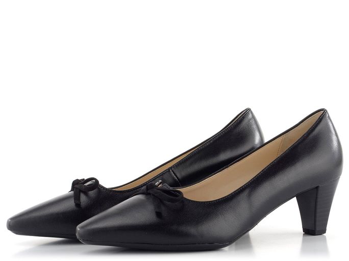 Elegantní a nadčasové lodičky od značky Gabor jsou ideální volbou pro každou ženu, která hledá kvalitu a styl. Tyto černé kožené lodičky se snadno kombinují s jakýmkoliv outfitem, ať už jde o pracovní schůzku nebo večerní akci. Díky špičatému střihu a malému prostřihu na nártu s mašličkou vypadají na noze skvěle. Svršek a podšívka z hladké kůže poskytují maximální komfort, zatímco měkká kožená stélka a broušený vnitřní opatek zajišťují, že vaše noha bude pevně držet na svém místě. Středně vysoký podpatek o výšce 5,5 cm je pohodlný pro celodenní nošení. Podešev s příměsí latexu a lepený výrobní způsob garantují dlouhou životnost. Vyberte si kvalitu od značky Gabor a dopřejte si pohodlí a eleganci v jednom.