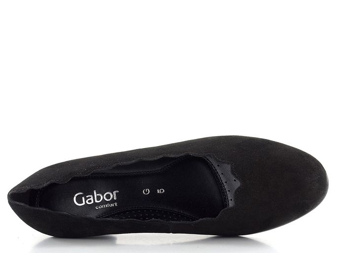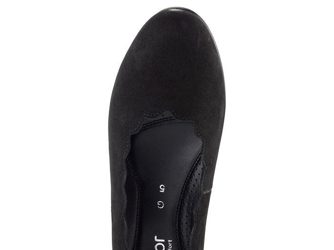 Elegantní černé lodičky značky Gabor jsou ideální volbou pro podzimní a zimní sezónu. Díky celokoženému svršku s jemným glitter odleskem a příjemné kožené podšívce poskytují maximální komfort při nošení. Lodičky mají kulatou špičku a extra měkkou stélku s perforací, což zajišťuje pohodlí po celý den. Vyztužený opatek drží chodidlo pevně při chůzi.