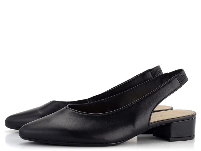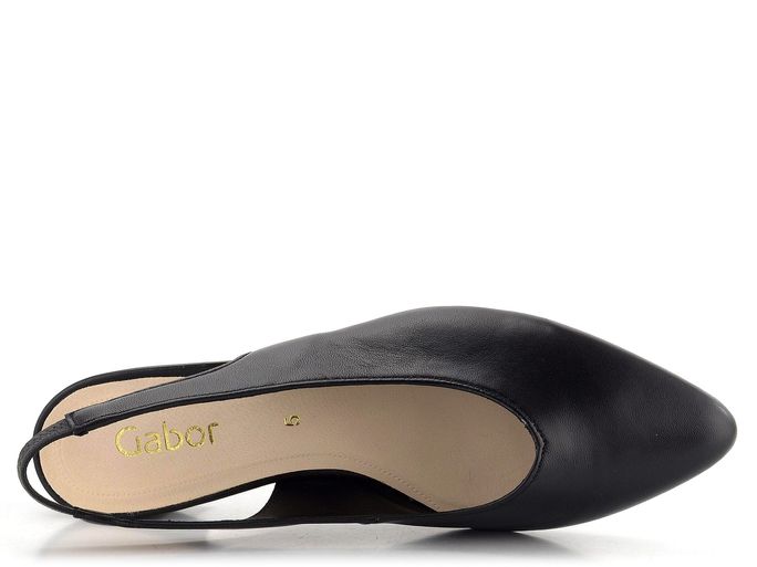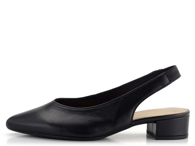 Elegantní a pohodlné dámské lodičky od značky Gabor jsou ideální volbou pro jaro a léto. Tyto černé lodičky s volnou patou jsou vyrobeny z hladké kůže, což zaručuje jejich trvanlivost a luxusní vzhled. Střih do módní špičky je vhodný pro mírně užší až standardní typ chodidla. Patní pásek se všitou pruženkou zajistí, že bota skvěle sedí a neklouže. Celokožený vnitřek je velmi poddajný a příjemný, což spolu s měkčenou koženou nášlapnou stélkou poskytuje maximální komfort. Stabilní potažený podpatek s výškou 3,7 cm dodává botám eleganci a syntetická podešev s jemným vzorkem zajišťuje bezpečný krok. Lepený výrobní způsob garantuje pevnost a odolnost. Tyto lodičky jsou skvělou volbou pro každou ženu, která hledá kombinaci stylu a pohodlí.