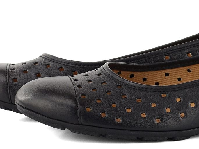Dámské komfortní baleríny v černé barvě s perforací a měkkou koženou stélkou.