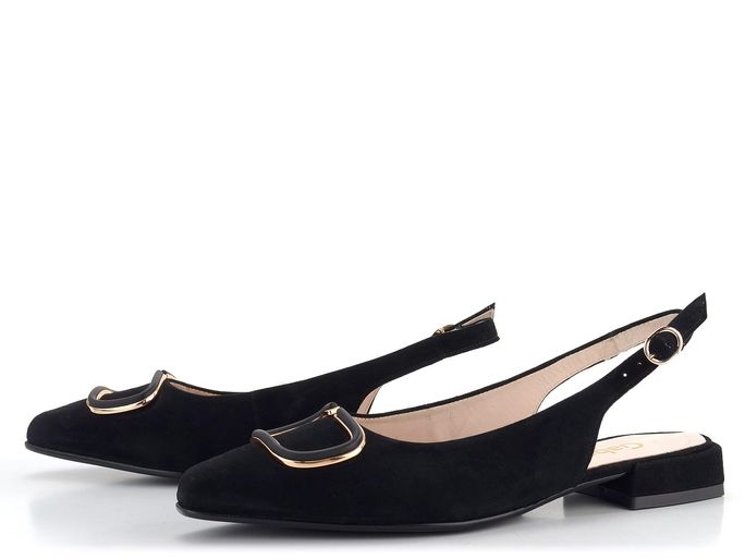 Dámské baleríny s elegantní špičkou a volnou patou vyrobené ze semišové kůže v černé barvě.