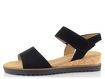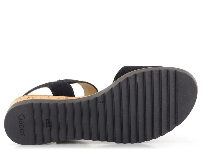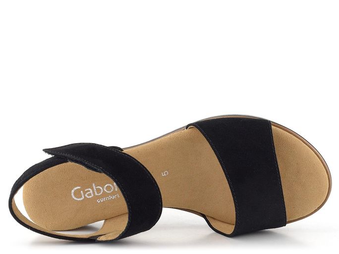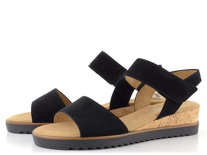 Elegantní a pohodlné, dámské semišové sandály na klínku od značky Gabor jsou ideální volbou pro jarní a letní dny. Tyto sandály vynikají svým jednoduchým střihem s kulatou špičkou a černou barvou, která se snadno kombinuje s různými outfity. Svršek je vyroben ze semišové kůže, což zajišťuje luxusní vzhled a dlouhou životnost. Textilní podšívka a měkká stélka poskytují maximální pohodlí při nošení. Kotníkový pásek upínaný na suchý zip, doplněný pruženkou, zajišťuje snadné a rychlé obouvání. Kvalitní latexová podešev s malým klínkem z přírodního korku a hrubší pilkovitý vzorek podešve přidávají na stabilitě a bezpečnosti. Výška podpatku je 4,5 cm, což dodává sandálům elegantní vzhled a zároveň je činí velmi komfortními pro celodenní nošení. Tento model je ideální volbou pro ženy, které hledají stylovou a pohodlnou obuv pro každodenní nošení i formálnější příležitosti.