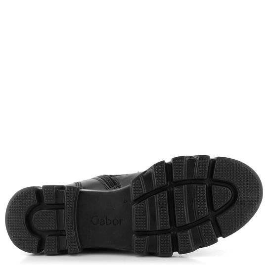 Stylová a pohodlná dámská kotníčková obuv na platformě od značky Gabor je ideální volbou pro podzimní a zimní sezónu. Vyrobena z kvalitní hladké kůže v oblíbené černé barvě, tato obuv nabízí nejen atraktivní vzhled, ale i vysoký komfort. Díky šněrování s kovovými průvlaky a plochými tkanicemi se snadno přizpůsobí tvaru nohy, zatímco postranní zip zajišťuje jednoduché obutí. Vnitřní teplejší podšívka z hebké vlasové textilie a vyjímatelná stélka s textilním potahem přispívají k maximálnímu pohodlí. Módní robustní podešev s hrubým profilem a výška podpatku 4,5 cm poskytují stabilitu a stylový vzhled. Výška kotníku je 17 cm (bez podpatku), což zaručuje optimální oporu. Tento model je šitý a lepený, což zaručuje dlouhou životnost a trvalou kvalitu.