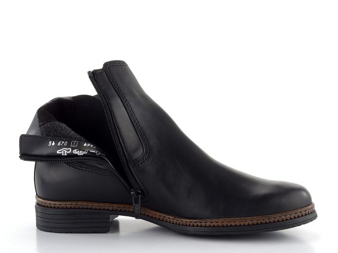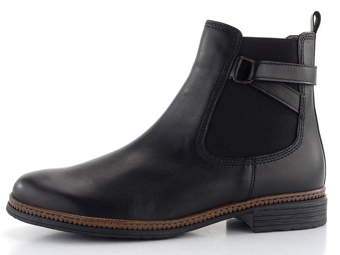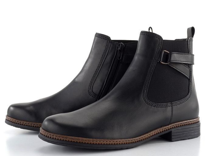 Elegantní dámské kotníkové boty od značky Gabor jsou ideální volbou pro podzimní a zimní sezónu. Vyrobeny z hladké kůže v oblíbené černé barvě, tyto boty nabízejí styl a pohodlí v jednom. Prostorná kulatá špička a široká pružná vsadka na vnějším boku zajišťují komfortní nošení. Na vnitřní straně je zip pro snadné obutí. Boty mají teplejší filcovou podšívku (mimo pruženku) a vyjímatelnou filcovou stélku, což zvyšuje jejich praktičnost. Kvalitní latexová podešev s pohodlným širokým podpatkem (3 cm) poskytuje stabilitu a pohodlí při každém kroku. Výška kotníku je 12,5 cm (bez podpatku, měřeno po hranu pruženky). Tento model je vyroben lepeným způsobem, což zaručuje dlouhou životnost. Vhodné pro ženy hledající stylovou a pohodlnou obuv do města i do kanceláře.
