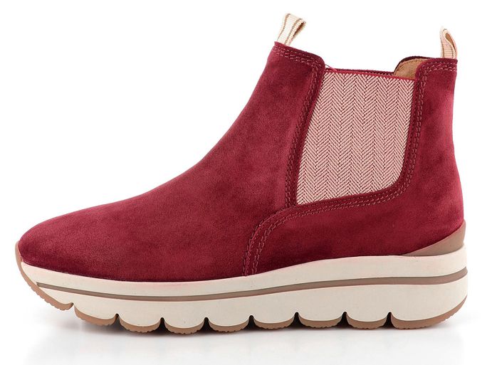 Dámská kotníková obuv od značky Gabor je ideální volbou pro ty, kdo hledají styl a pohodlí v jednom. Tento model v krásné vínové barvě je navržen pro sezónu podzim/zima a nabízí prozouvací typ obuvi (chelsea) s pevnou semišovou kůží na svršku. Díky pružinám po stranách je obutí i chůze velmi komfortní. Podšívka je z příjemné hladké kůže, což zaručuje pohodlí po celý den. Vyjímatelná stélka s pěnovým základem a textilním potahem přispívá k maximálnímu komfortu. Vyšší sportovnější podešev s hrubým latexovým vzorkem a výškou podpatku 4,3 cm dodává botám moderní vzhled a zajišťuje stabilitu. Výška kotníku je 11 cm (bez podešve). Tento model je vyroben lepeným způsobem, což garantuje dlouhou životnost. Dopřejte si kvalitu a styl, který přináší značka Gabor.