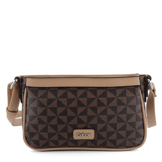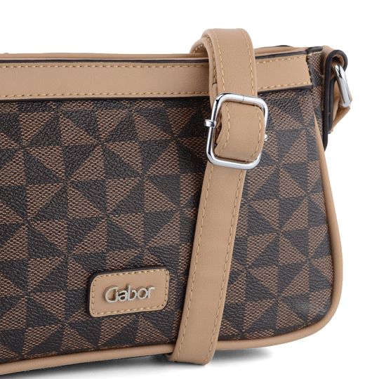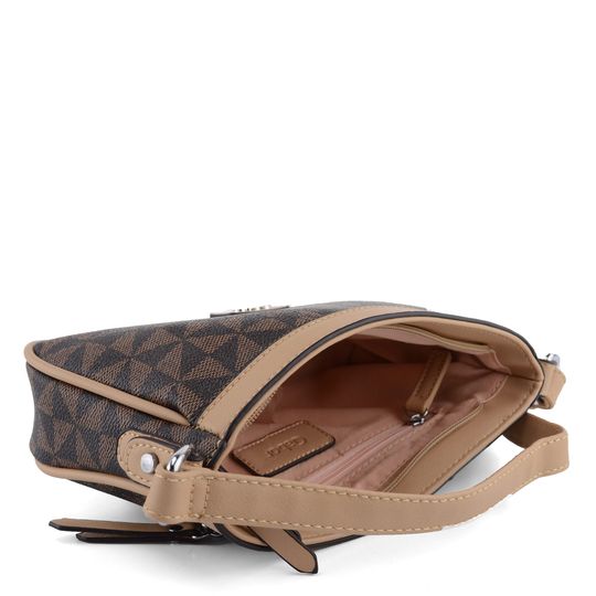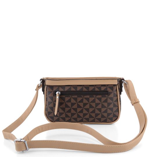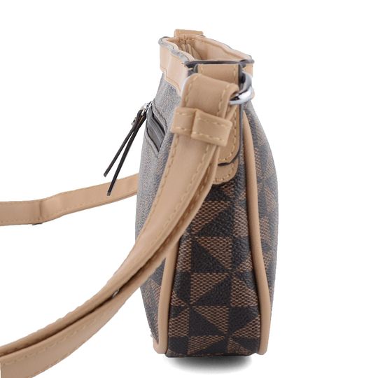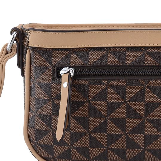Dámská módní crossbody kabelka s trendy potiskem a světlým lemováním.